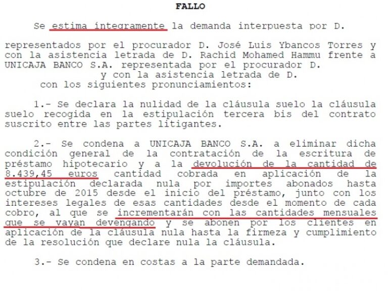 Primera condena a UNICAJA en devolución total tras la sentencia de TJUE sobre Cláusula Suelo